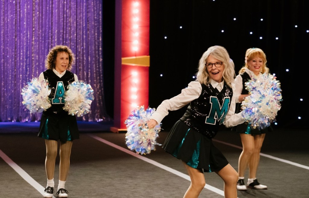 Anyone who watches Poms will manage to crack a smile a few times, even if they recognize internally that they’re smiling at shtick that isn’t particularly intelligent. It’s humour that’s meant to be broad and instantly digestible, like one punchline early on that explains why a woman got second place at a talent contest in the ‘50s (the winner “had sex with the judges”—of course). It’s not just the humour that’s broad, though. Everything from the characters to the setup exists without much specificity. The retirement community Diane Keaton’s character moves to is a generic amalgamation of what everyone assumes a retirement community is supposed to be like, with ingratiating neighbours and an in-built hierarchy for self-important residents. Everyone gets around in golf carts; people are expected to join social clubs, and so forth. Keaton’s character is a generic cancer sufferer on her last legs, so indifferently written that I can’t even recall what cancer she has, or if it’s even mentioned in the film at all. Jacki Weaver, meanwhile, plays her hyperactive sidekick, who is characterized primarily for being sexually promiscuous and loudly opinionated. Keaton and Weaver are not bad here and do their best to overcome the script’s inability to transcend its base clichés, but I could frequently sense their hearts weren’t completely in it (Keaton’s especially).